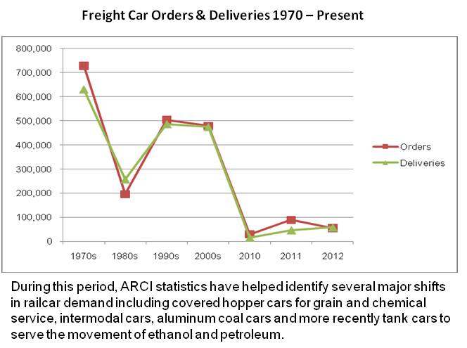 Each financial quarter, the RSI American Railway Car Institute Committee (ARCI) prepares and distributes statistics on North American freight car orders, deliveries, and backlogs to its affiliate members. The RSI ARCI is the only organization that tabulates and publishes freight car statistics which are proprietary and only available to ARCI affiliate members. RSI also maintains annual data on orders and deliveries going back to 1965.