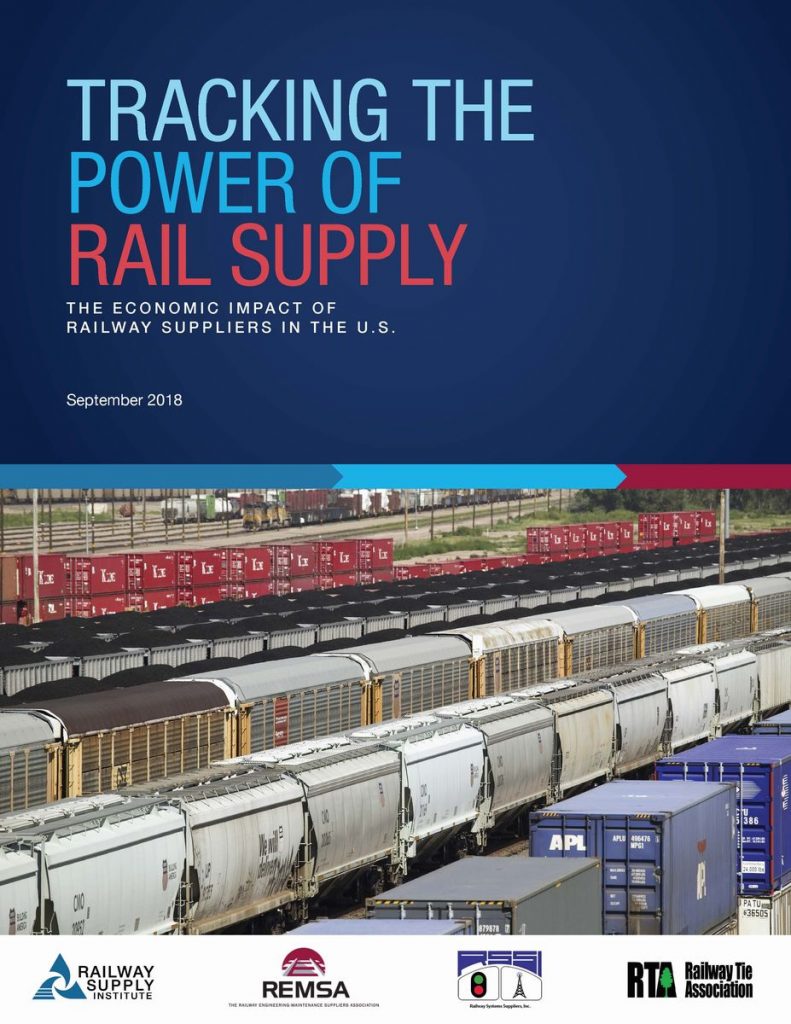 Tracking the Power of Rail Supply: The Economic Impact of Rail Suppliers in the U.S. is a major new study that quantifies the economic and workforce impact of the products and services produced by the railway supply industry in the U.S. The Railway Supply Institute (RSI), partnering with the Railway Engineering-Maintenance Suppliers Association (REMSA), Railway Systems Suppliers, Inc. (RSSI) and Railway Tie Association (RTA) commissioned Oxford Economics to develop the report. It highlights the importance of the industry to the U.S. economy in terms of jobs, tax revenue, and gross domestic product (GDP) on both the state and national level.