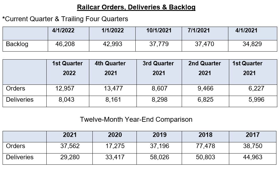 Newly released data by the RSI American Railway Car Institute Committee (ARCI) shows orders and deliveries remaining steady in Q1. The total backlog grew by approximately 7%.