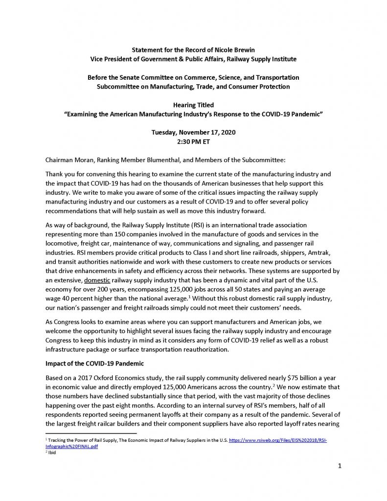 Read RSI’s Testimony Before the Senate Commerce Committee Urging Action on Freight RAILCAR Act